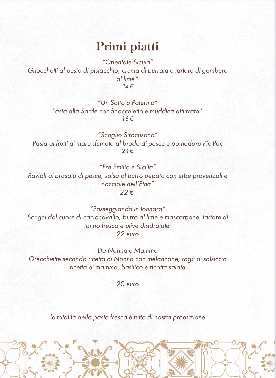 Possibilità di Menù personalizzati